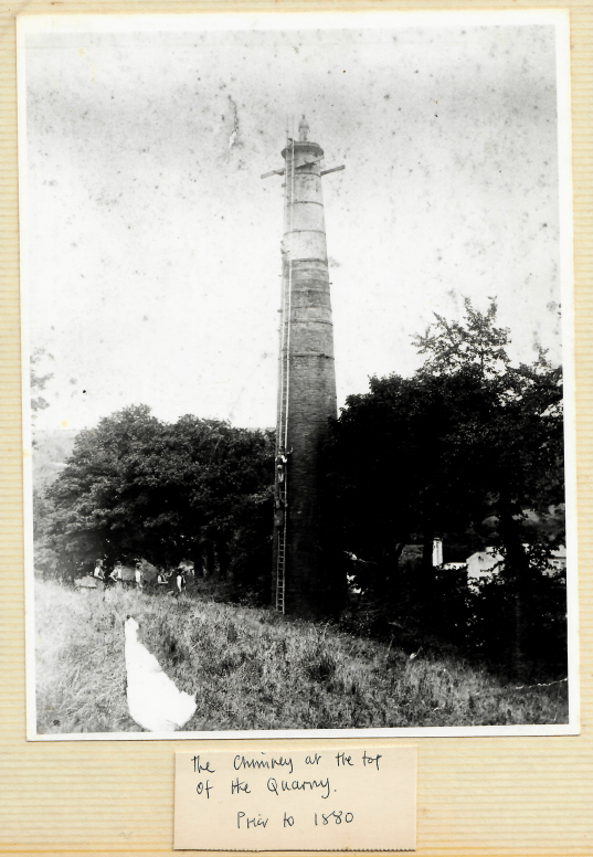 The chimney ‘stack’ was build aloft the quarried cliff face allowing for sufficient draught (draw) from the 10 furnaces into the air. It was likely demolished c1899.