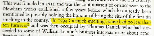 The Newham Works opened (and was technically the first incarnation of Calenick, employing the first reverberatory furnace technology in Cornwall’s tin smelting industry).